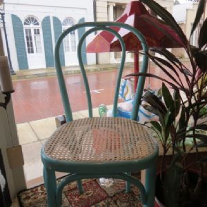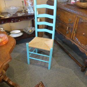 Aqua blue accent chair, one with a rush seat and one with a cane seat